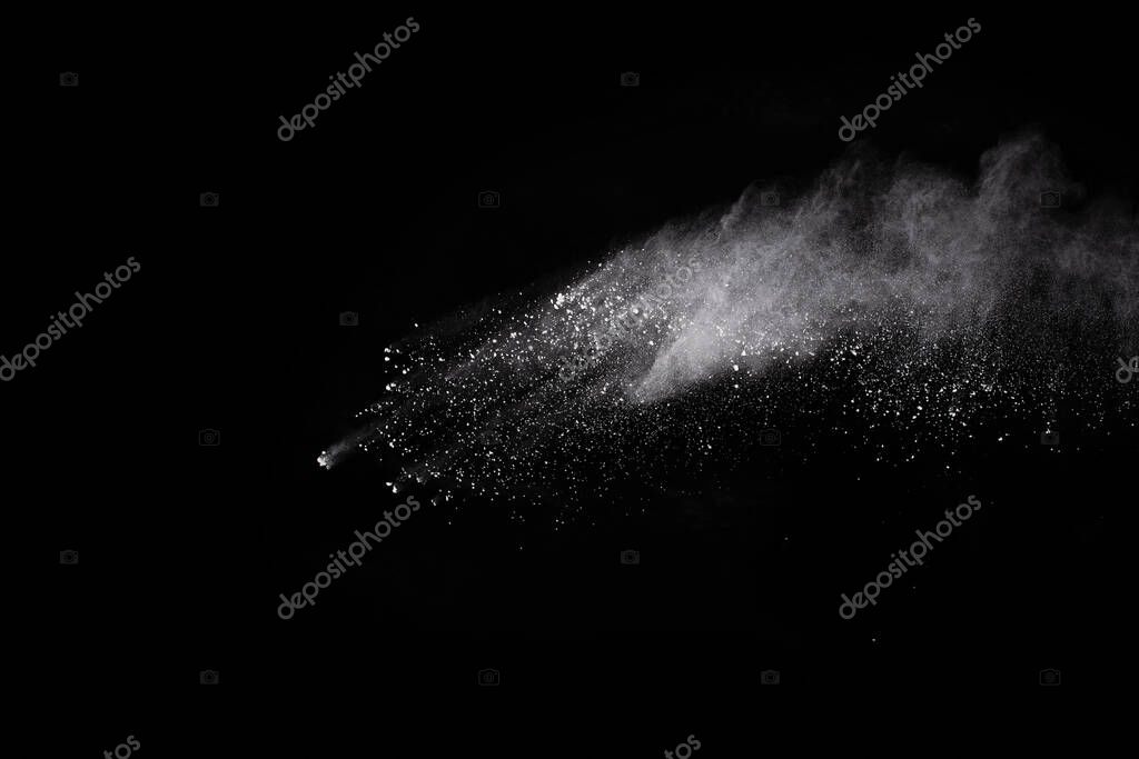 Взрыв белого пороха на черном фоне. Цветное облако. Разноцветная пыль взрывается. Холи, Пейнт.