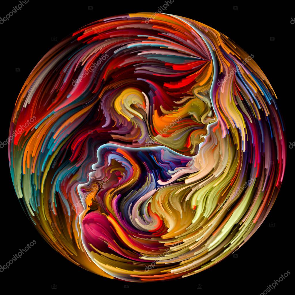 - "Soul Mates". Нечеткие мужские, женские черты лица соединились в символ формы инь-янь с мазками цифровой краски. Иллюстрация на тему любви, романтики, искусства и сил в природе.