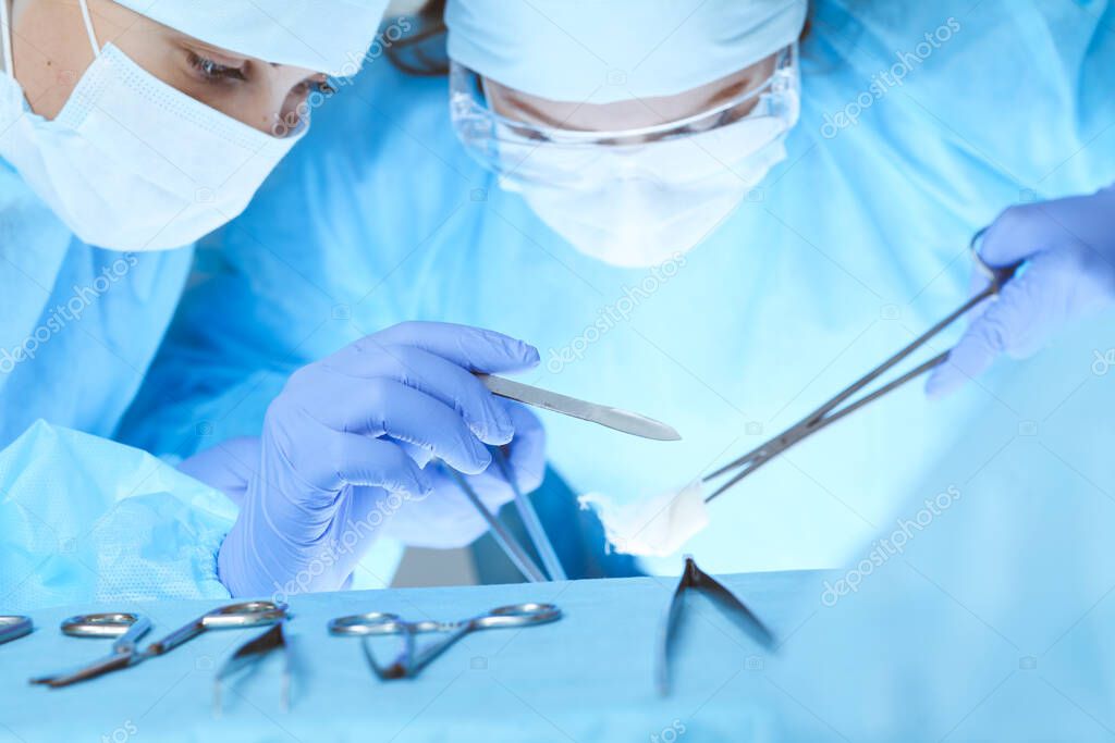 Крупный план работы медицинской бригады. Группа хирургов на работе занята пациентами. Медицина, ветеринария или здравоохранение и неотложная помощь в больнице.