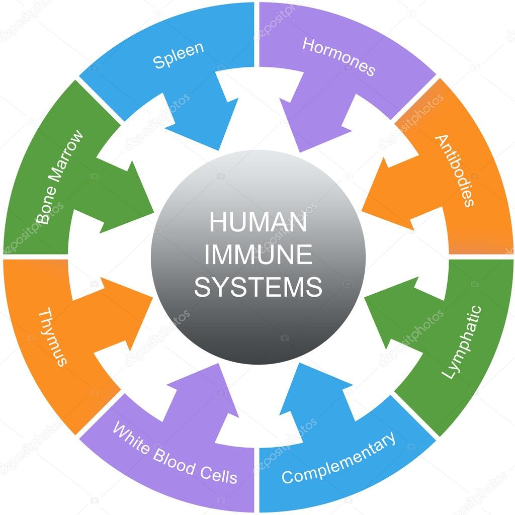 Круги с большими терминами, такими как spleen, гормоны, антитела и т.д.