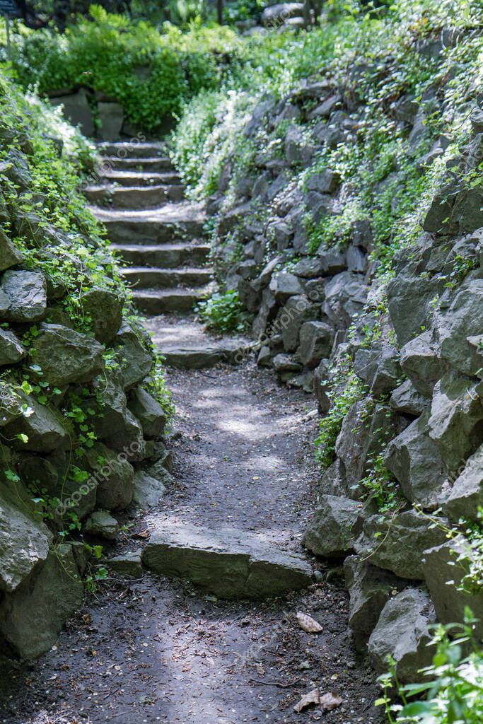 Каменные ступеньки и тропинка в парке