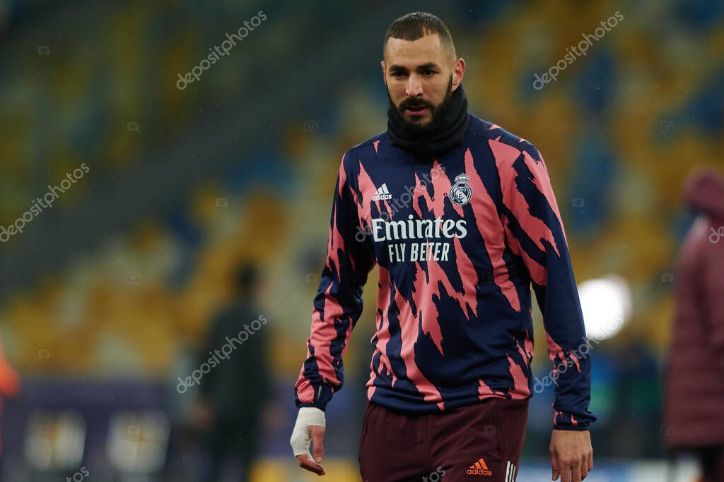 КИЕВ, УКРАИНА - 1 ДЕКАБРЯ 2020: Карим Бензема. Футбольный матч группы B Лиги чемпионов УЕФА ФК "Шахтер" Донецк - Реал Мадрид