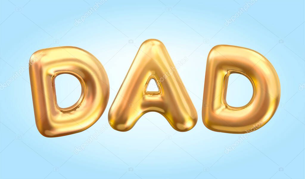 - 3d дизайн шрифта воздушного шара. Золотые заглавные буквы отца, написанные реалистичными воздушными шарами