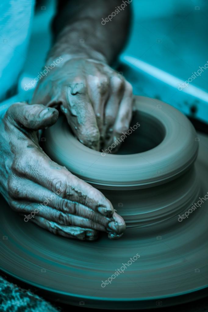 - Руки, работающие на гончарном круге, художественный тонус