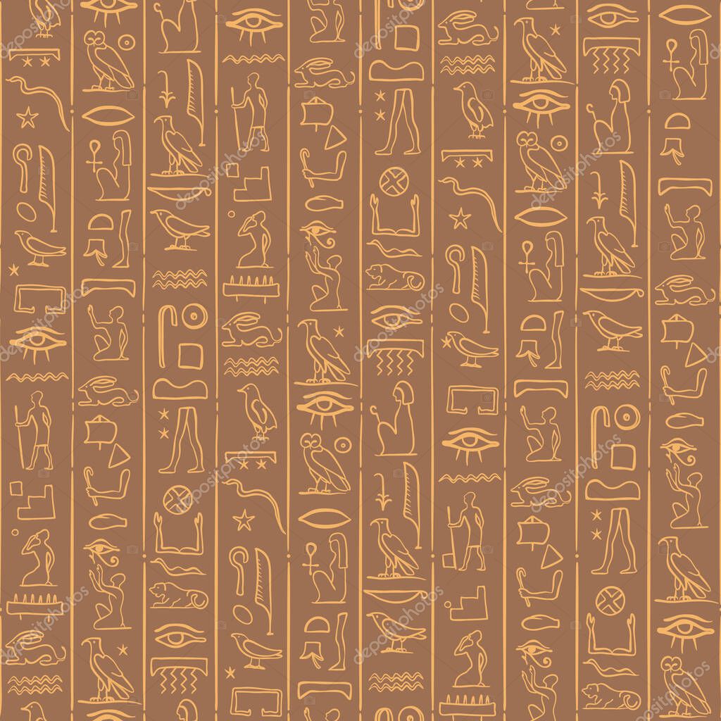 - Древний Египет. Винтажный бесшовный рисунок с египетскими иероглифами. Ретровекторная повторяющаяся иллюстрация.