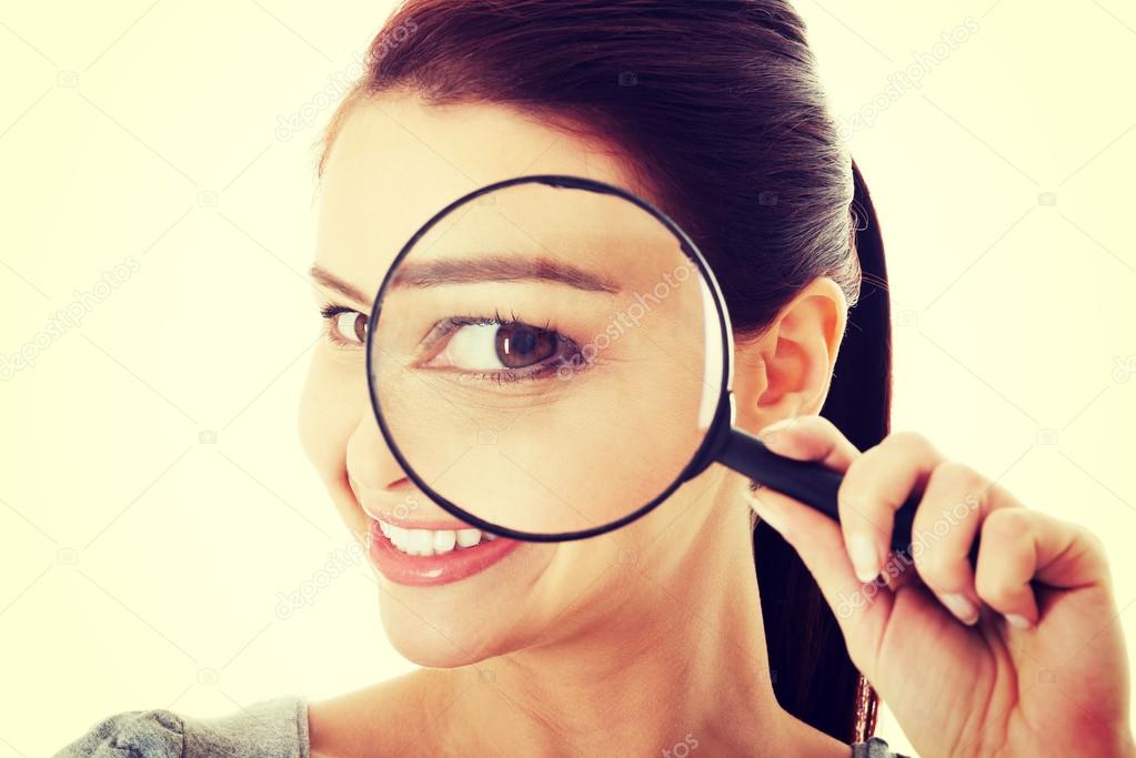 - Молодая красивая женщина с лупой .