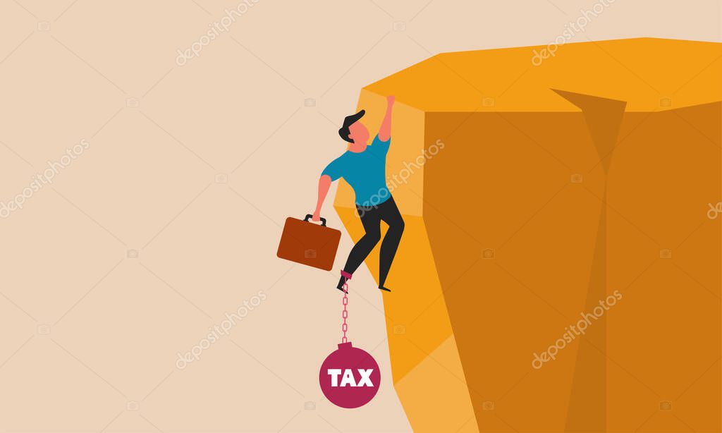 - Подоходный налог и налогообложение бизнес-долга. Трудящиеся обанкротили проблему и концепцию векторной иллюстрации кризиса. Тяжелые деньги и стресс платят доход. Возврат банковского долга и оплата услуг