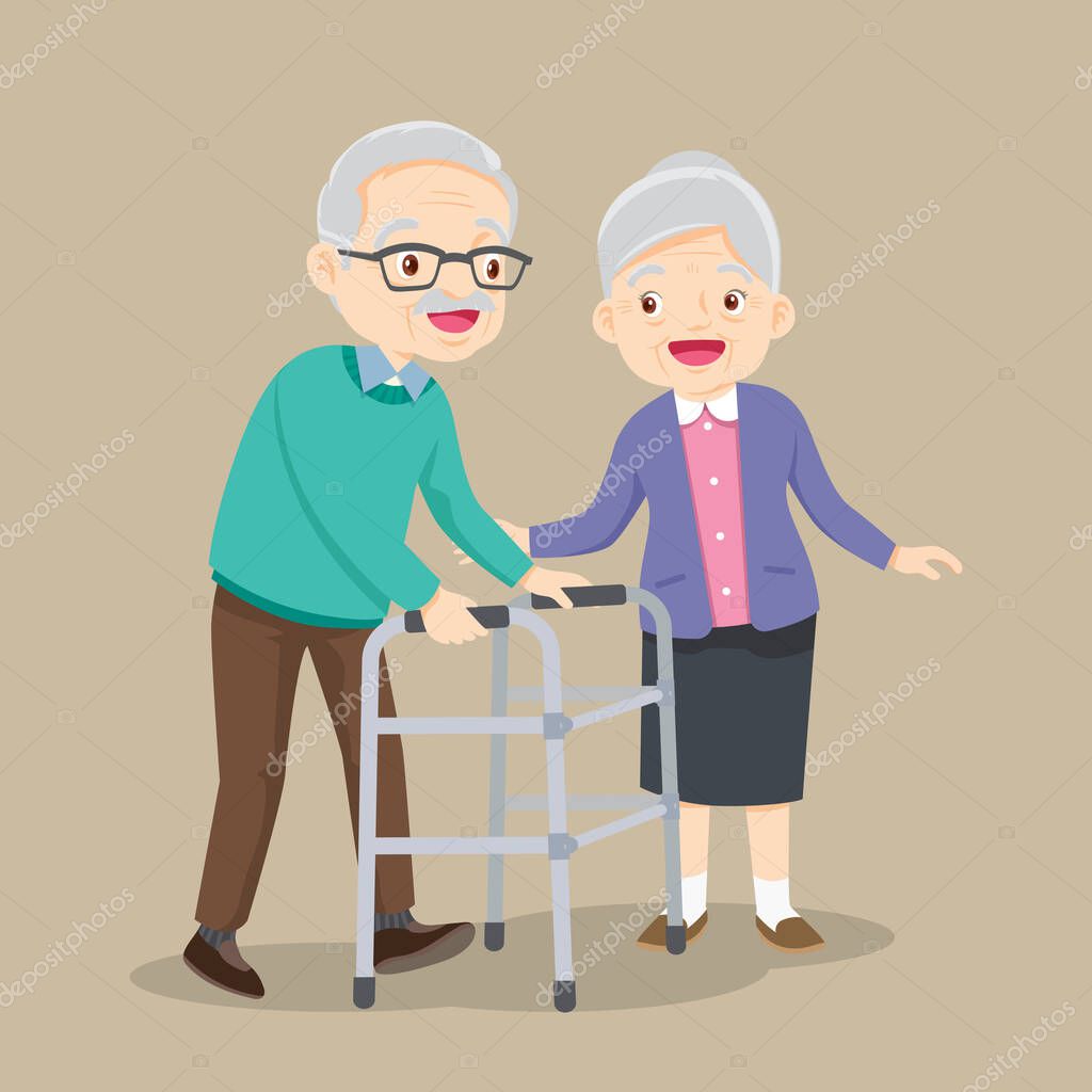 - пожилая женщина заботиться о пожилом мужчине физиотерапия