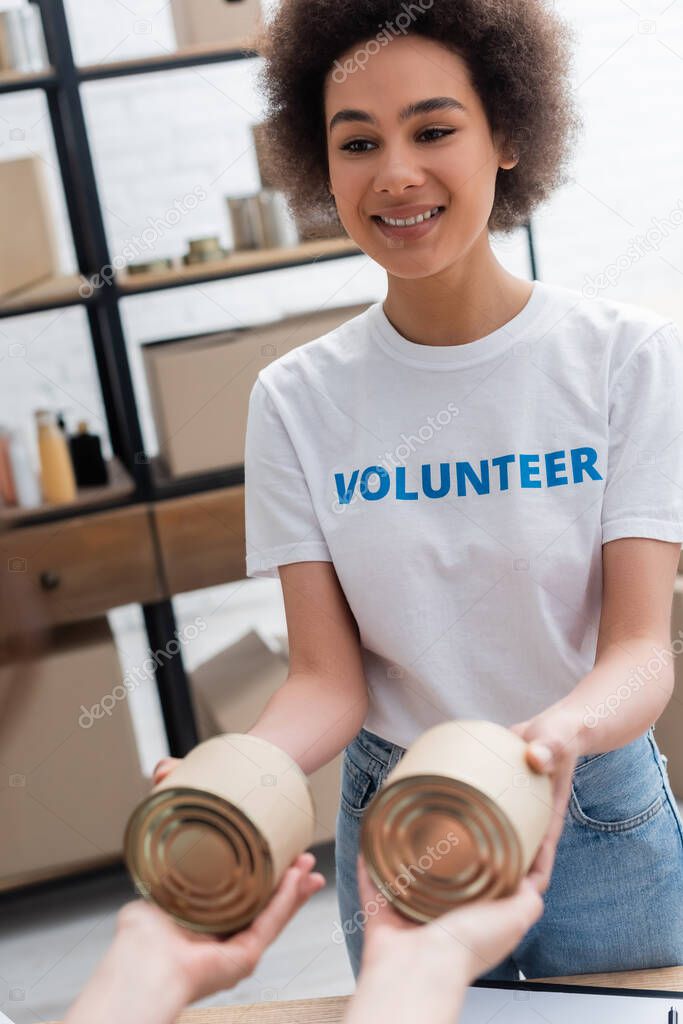 Молодая африканская американка, раздающая гуманитарную помощь в волонтерском центре
