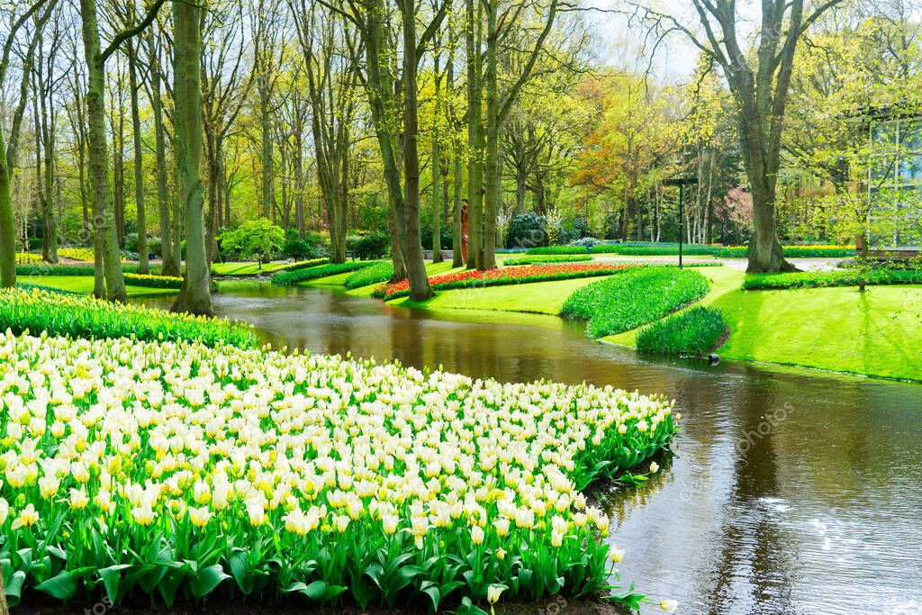 - Весенние реки и зеленые клумбы в саду Keukenhof, Нидерланды