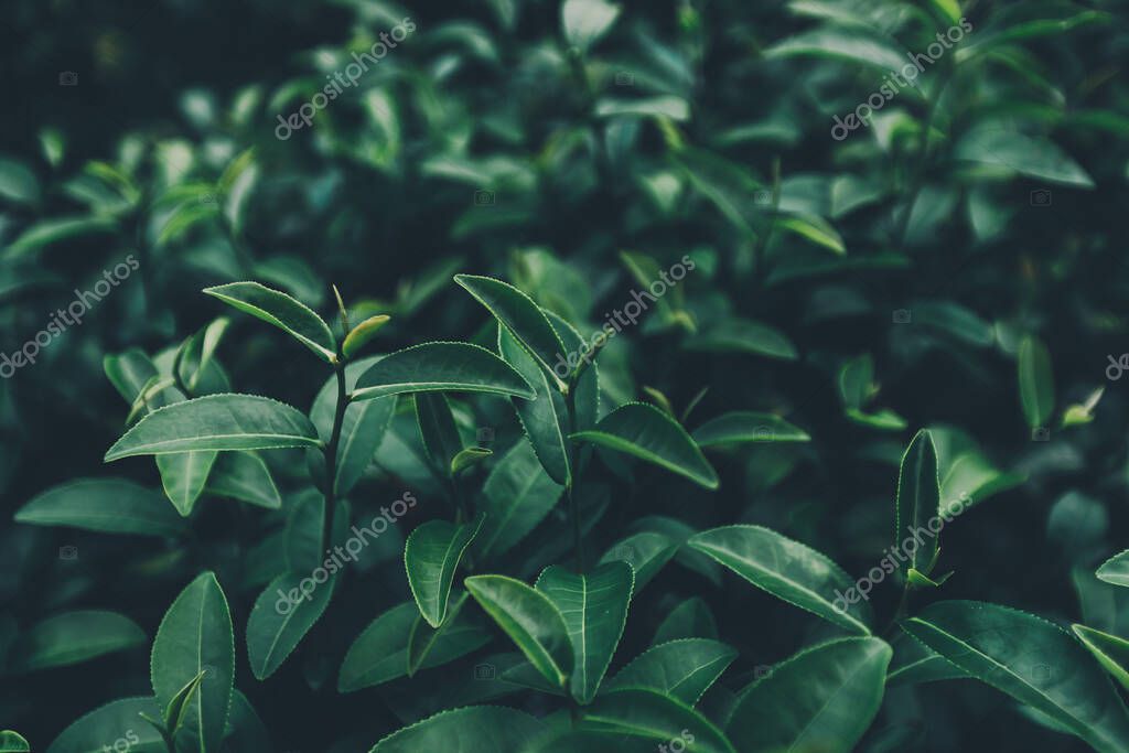 - Top of Green tea leaf in the morning, tea plantation