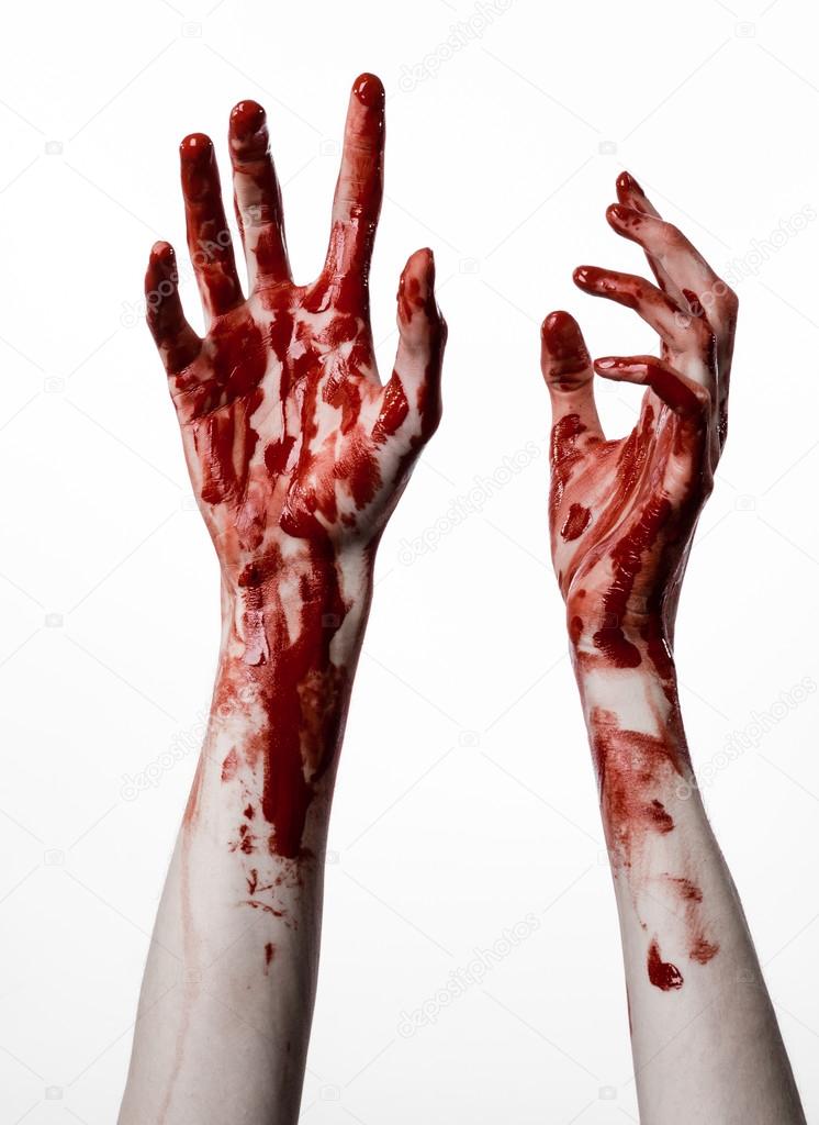 - Кровавый Хэллоуин тема: кровавые руки убийца зомби изолированы на белом фоне в студии