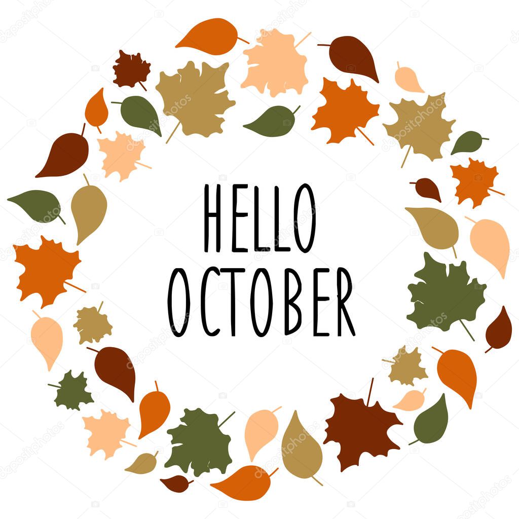 - Осенние листья венок с письмом изолированы на белом. Теплые цвета Векторная круглая рамка для открытки, украшения, баннера. Сезонная октябрьская иллюстрация с краем круга из кленового листа.