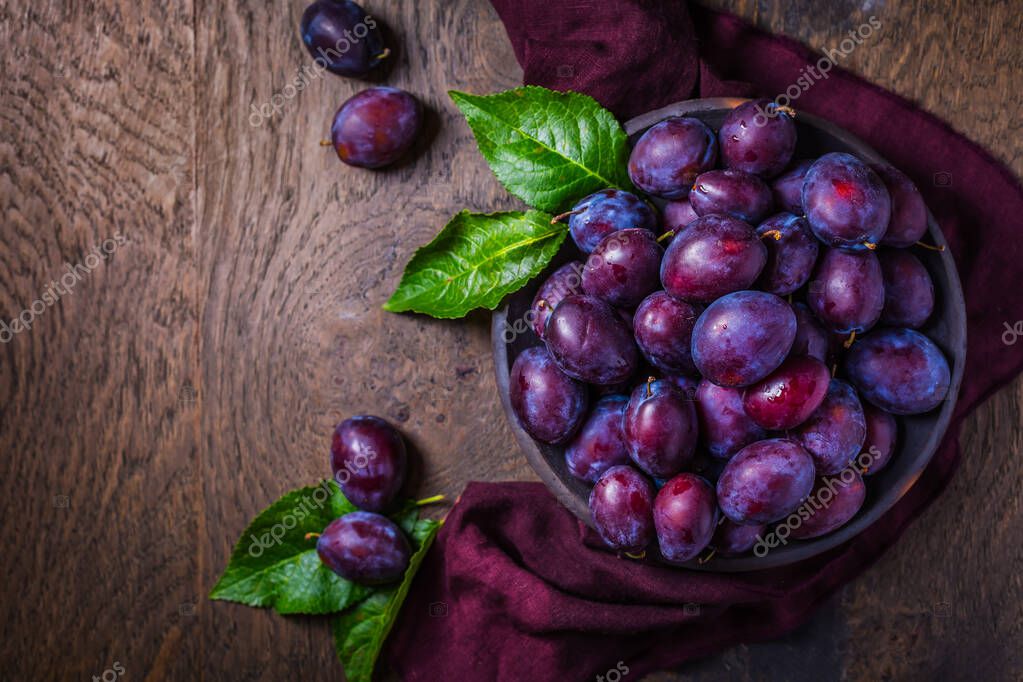 - Свежие сливы на темном деревянном фоне