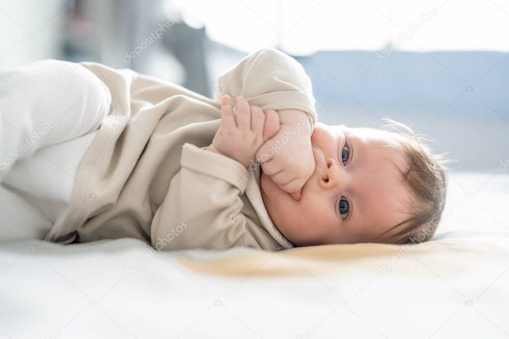 БЕЛЫЙ МАЛЫЕ КРАСИВАЯ ДЕВУШКА РАДОСТЬ КОМФОРТНЫЙ ПОРТРЕТ СИМПАТИЧНЫЙ КАВКАЗСКИЙ РЕБЕНОК МАЛО РОТ МУЖЧИНА ЛИЦО КРОВАТЬ МАЛЬЧИК СМЕШНО РУКА ВЫРАЖЕНИЕ ОКНО ОЧАРОВАТЕЛЬНЫ ЛОЖЬ ЗУБЫ ГЛАВНАЯ СТРАНИЦА ПАЛЬЦЫ ПАЛЕЦ НОМЕР СМОТРЯ В ПОМЕЩЕНИИ СЫН МЛАДЕНЕЦ ТОДДЛЕР КРОШЕЧНЫЙ СПАЛЬНЯ КУСАНИЕ НЕЖНОСТЬ ЖИВОТИК ПОСТЕЛЬНОЕ БЕЛЬЕ ДЕСНЫ ВИД СБОКУ КОПИРОВАЛЬНОЕ ПРОСТРАНСТВО ЧЕТЫРЕ МЕСЯЦА