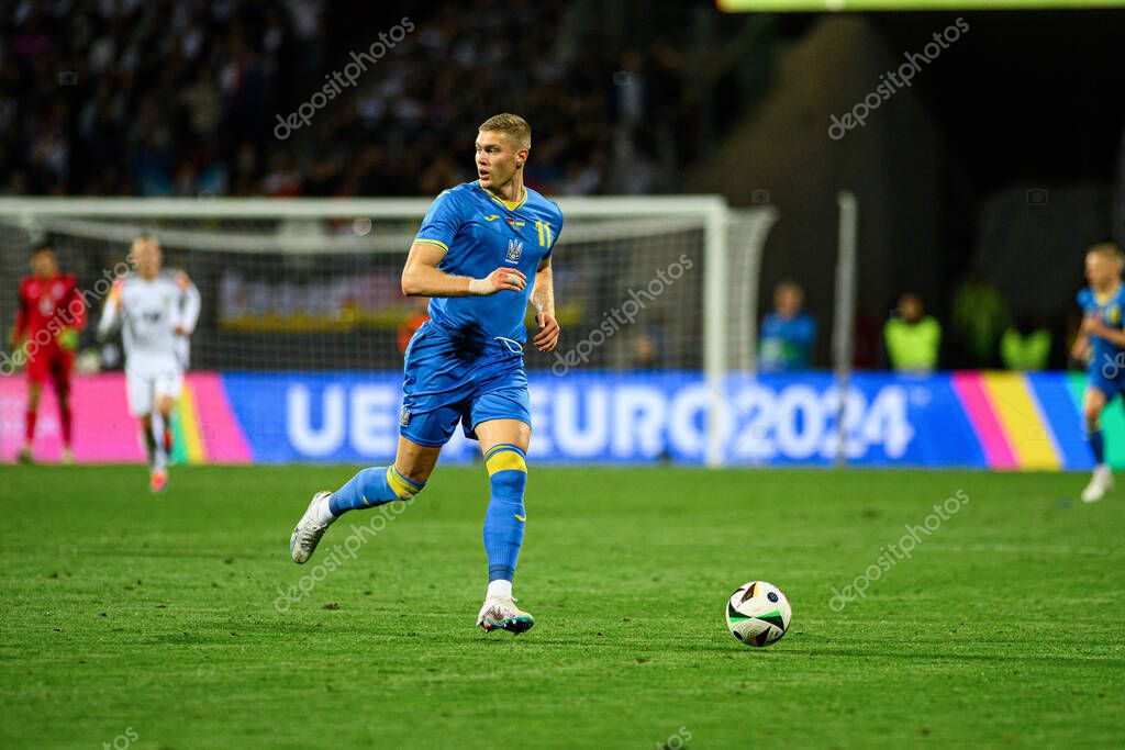 - НУРЕМБЕРГ, ГЕРМАНИЯ - 3 ИЮНЯ, 2024: Артем Довбык, товарищеский футбольный матч Германия - Украина на стадионе "Макс Морлок"