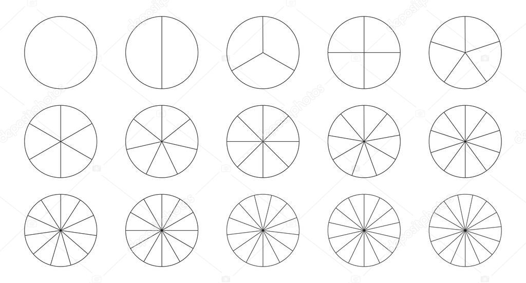 - Значок сегмента ломтик. Шаблон диаграммы. График сечения круга. 1,2,3,4,5,6,7,8,9,10,11,12,13,14,15 сегментов инфографики. Части колеса схемы. Геометрический элемент.