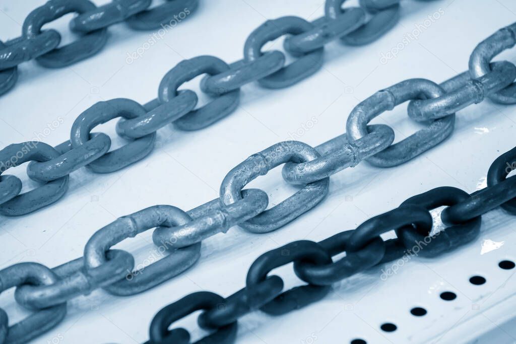 Закрыть сцену группа цепи в голубой сцене. Концепция промышленного оборудования.