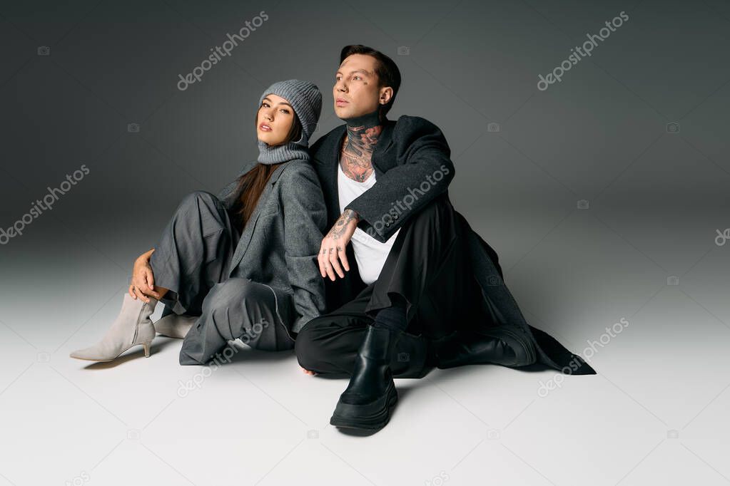 - Стильный дуэт позирует вместе, выставляя напоказ свои модные наряды и уверенность в студии.