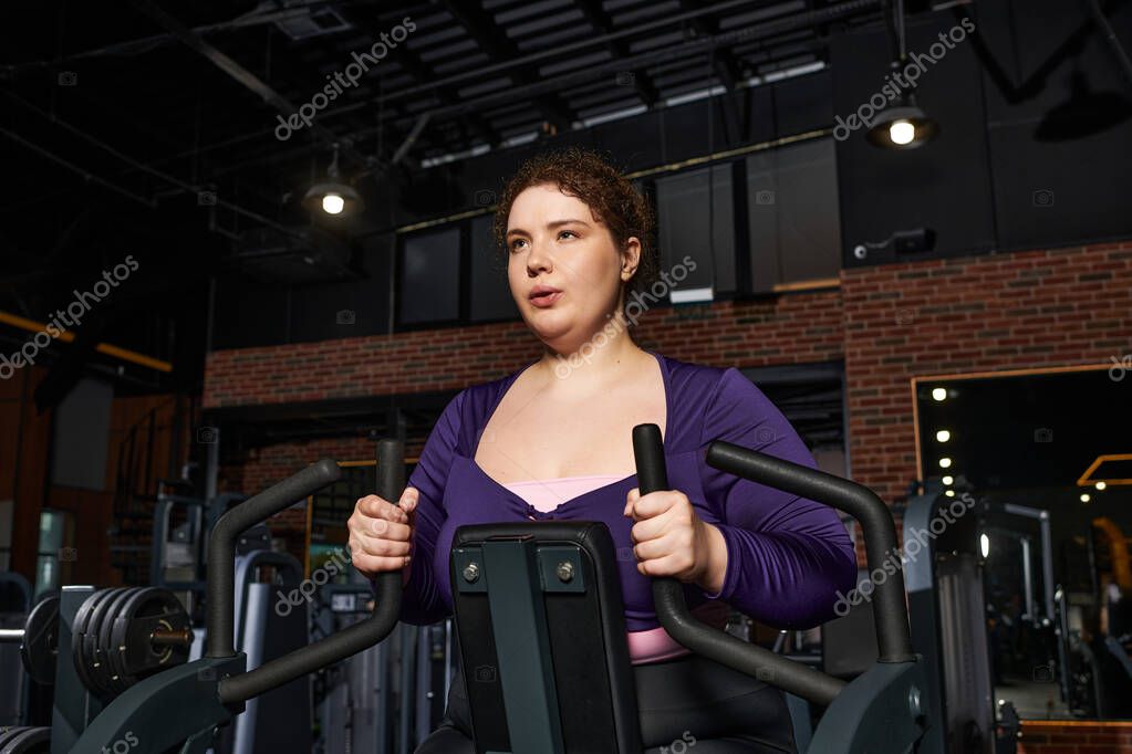 Окаменелая женщина занимается страстными тренировками, раздвигая границы в энергичной обстановке спортзала.