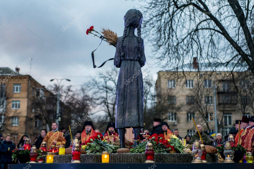 - Люди посещают памятник жертвам Голодомора во время церемонии, посвященной 92-й годовщине голода 1932-1933 годов, в которой миллионы людей умирают от голода, в Киеве, Украина, 23 ноября 2024 года