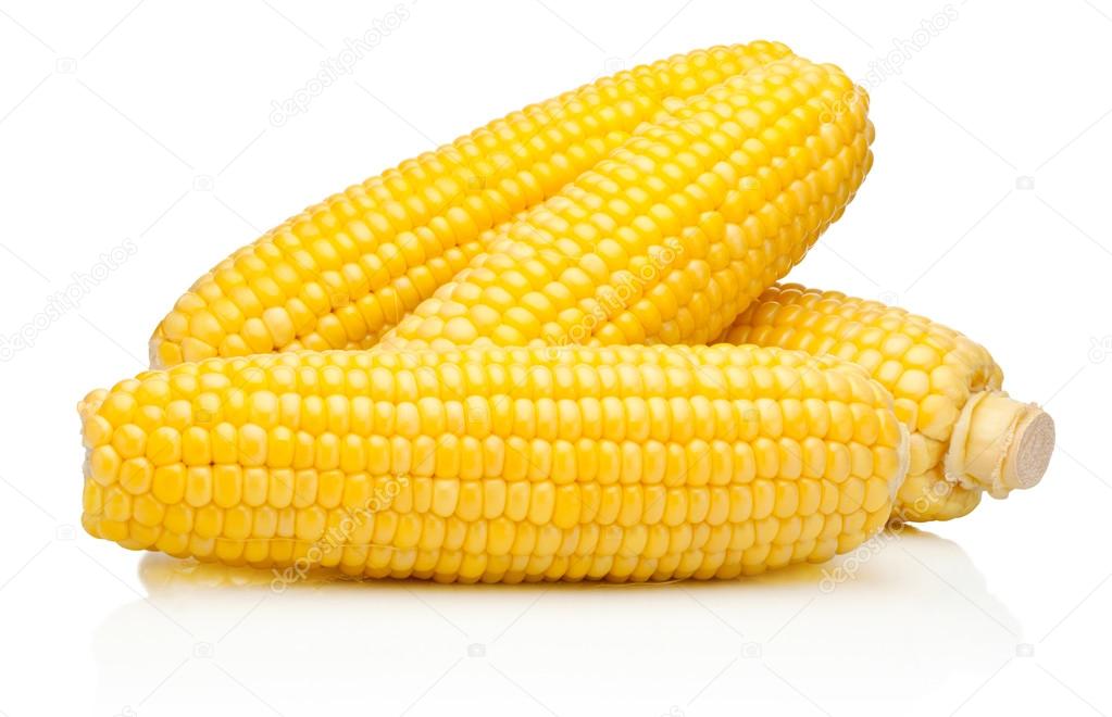 - Кукуруза на зернах початков очищены изолированы на белом фоне