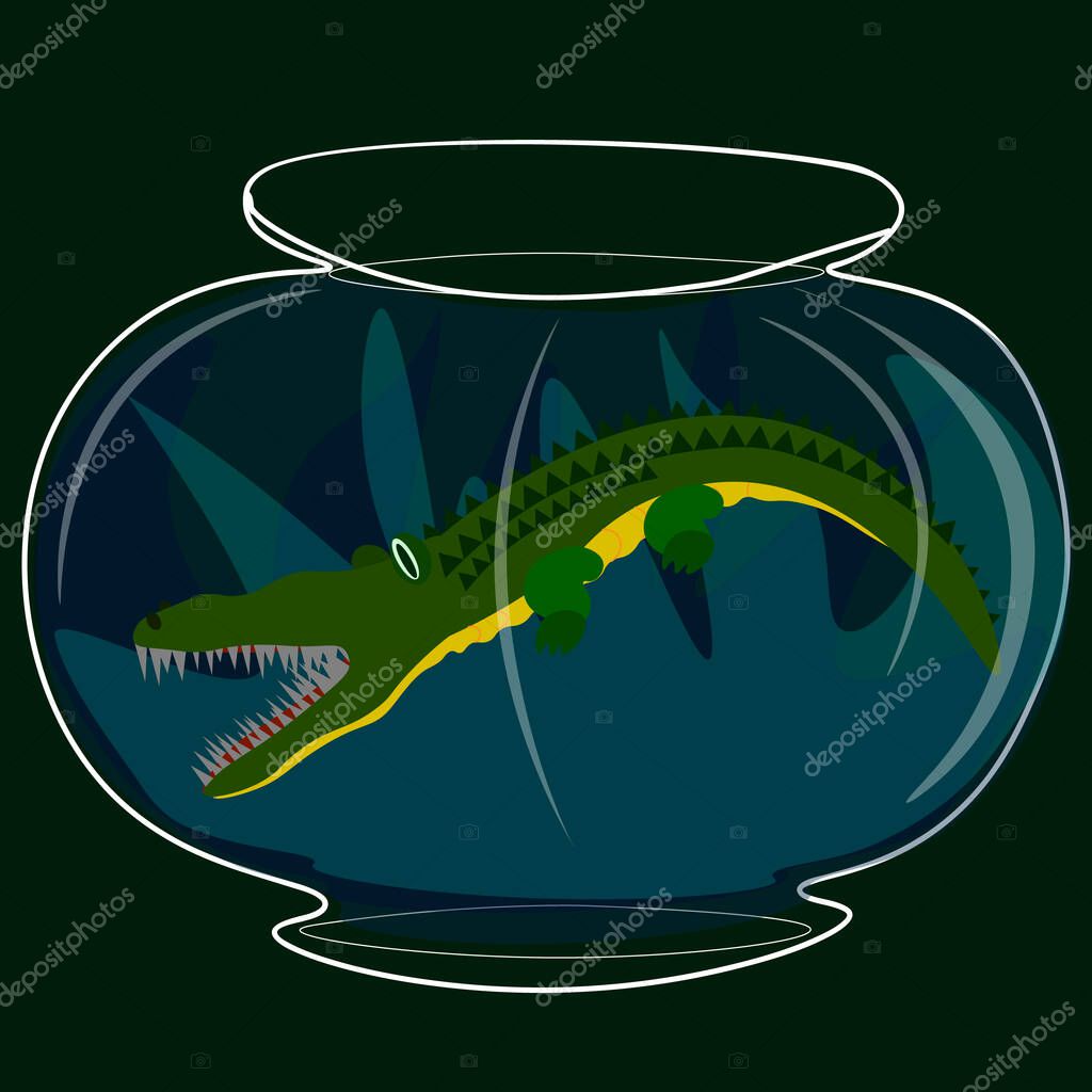 - Векторная графика Абстракция. Аллегория. Зеленый крокодил плавает в большой стеклянной банке.