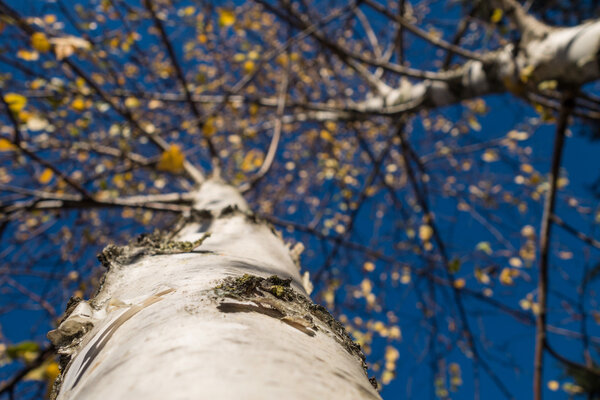 - Береза с желтыми листьями в осеннем лесу вид снизу