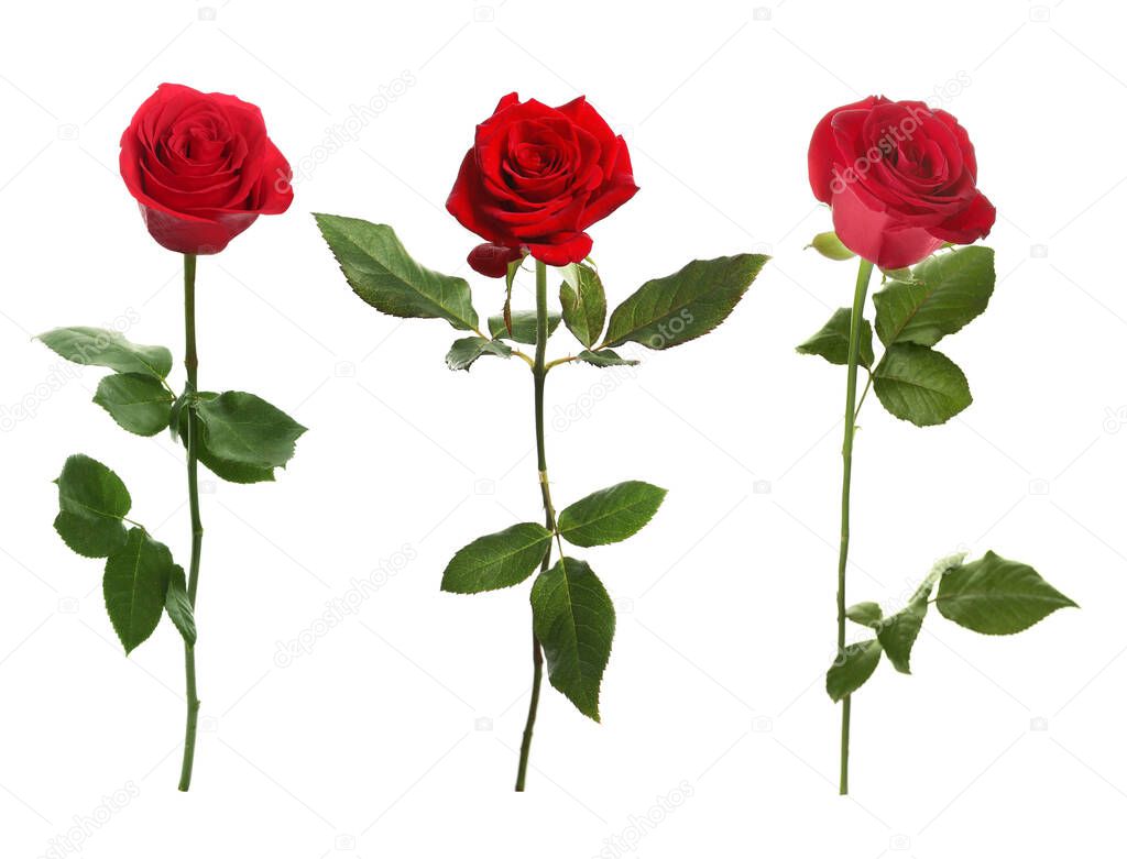 - Красные цветы розы изолированы на белом, набор