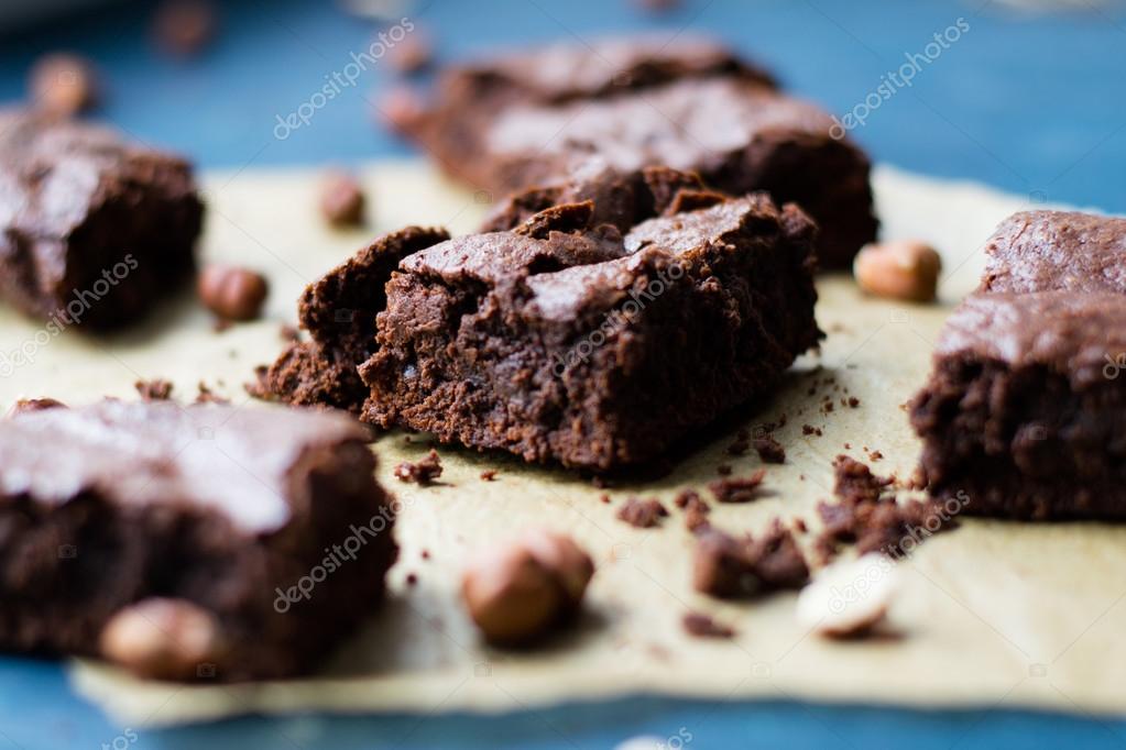 Домашние шоколадные пирожные на деревянном столе