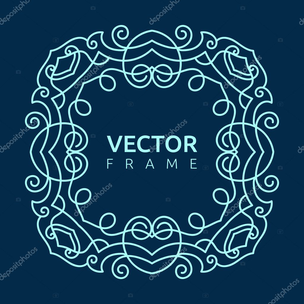 Винтажный кадр для твоего текста. Векторная монограмма. Дизайн линии. Декоративный орнамент с абстрактными цветами